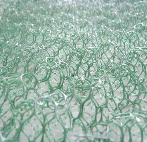三維植被網(wǎng)概述三維植被網(wǎng),也被稱為三維土工網(wǎng)墊,是一種具有獨(dú)特三維結(jié)構(gòu)的網(wǎng)墊,其形狀類似于絲瓜網(wǎng)絡(luò)。這種網(wǎng)墊質(zhì)地輕盈且柔韌,含有高達(dá)90%的空間,可填充土壤、沙礫和細(xì)石。 植物的根系能夠輕松穿過網(wǎng)墊,從而舒適、有序且均衡地生長(zhǎng)。一旦草皮長(zhǎng)成,它與網(wǎng)墊和泥土表面將牢固地結(jié)合在一起,形成一個(gè)堅(jiān)固的綠色復(fù)合保護(hù)層,其深度可達(dá)地表以下30-40cm。