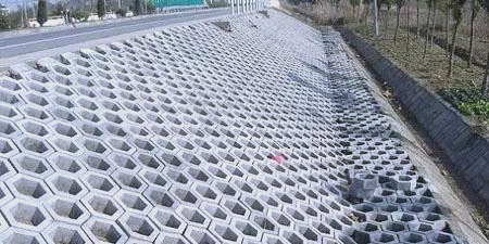 與干砌片石護(hù)坡技術(shù)頗為相似,它通過在修整好的邊坡上拼鋪正六邊形的混凝土框磚,構(gòu)建出蜂巢般的網(wǎng)格結(jié)構(gòu)。隨后,在每個網(wǎng)格內(nèi)鋪填適宜的種植土,并在磚框內(nèi)精心栽種或播撒草種。這一系列步驟構(gòu)成了一項(xiàng)創(chuàng)新的邊坡防護(hù)措施,旨在提升坡面的穩(wěn)定性并促進(jìn)植被的迅速生長。